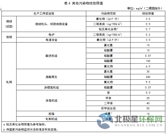 現有企業2020年1月1日前執行DB13/2169-2015和《河北省環境保護廳關于河北省鋼鐵行業執行大氣污染物特別排放限值的公告》(2016年第1號)中規定的排放限值,2020年1月1日起執行表1~表4規定的排放限值。